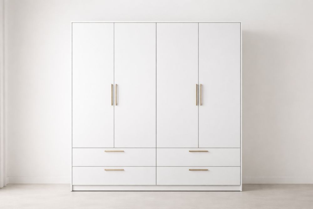 Armadio Bianco con 4 Ante e 4 Cassetti