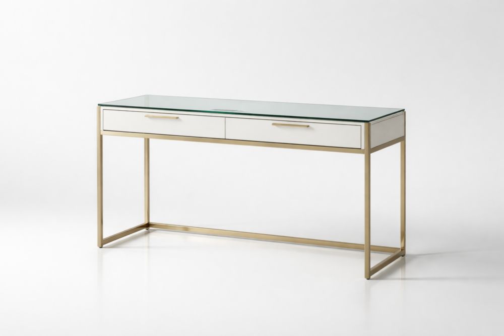 Scrivania in Vetro Temperato e Acciaio con Due Cassetti