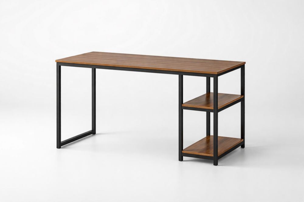 Scrivania in Legno e Metallo con Ripiani Laterali